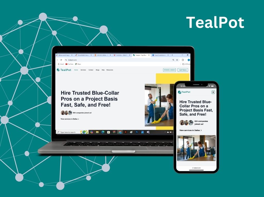 Tealpot is a platform that connects skilled blue-collar workers with clients in need of services like plumbing, electrical work, and carpentry. We developed a scalable application using Next.js and MongoDB, featuring intuitive job posting, service scheduling, secure payments, and user reviews. The platform also includes an admin dashboard for efficient management. Tealpot empowers workers by expanding their reach and provides clients with easy access to trusted professionals, transforming the way services are requested and delivered in the informal sector.